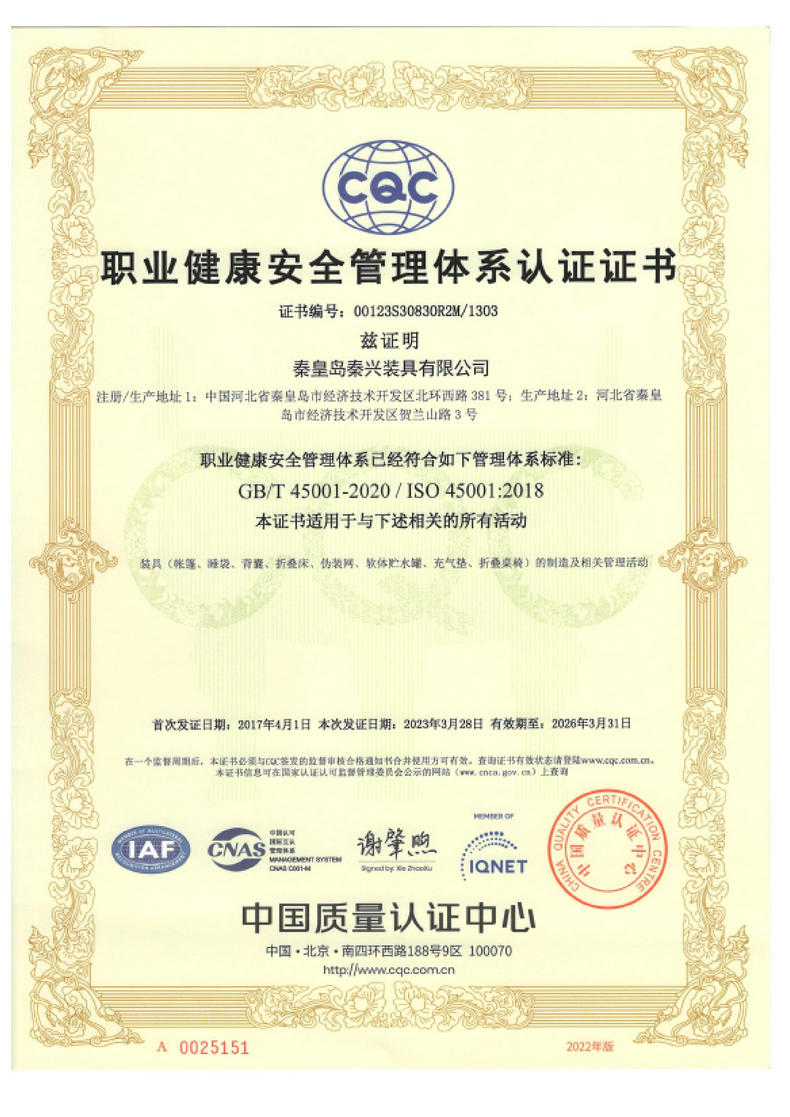 • 職業(yè)健康安全管理體系認(rèn)證證書
